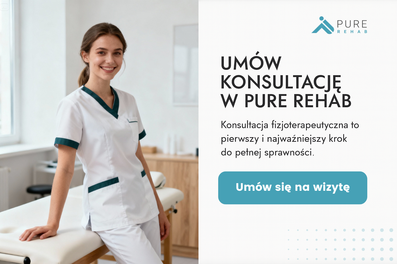 W PURE REHAB łączymy fizjoterapię, medycynę i nowoczesne podejście do zdrowia, aby pomóc Ci wrócić do pełnej sprawności.